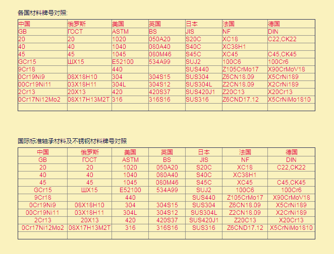 每個(gè)國(guó)家對(duì)于不銹鋼軸承的材料牌號(hào)是不一樣的,大家在選購(gòu)的是應(yīng)該要注意區(qū)分: